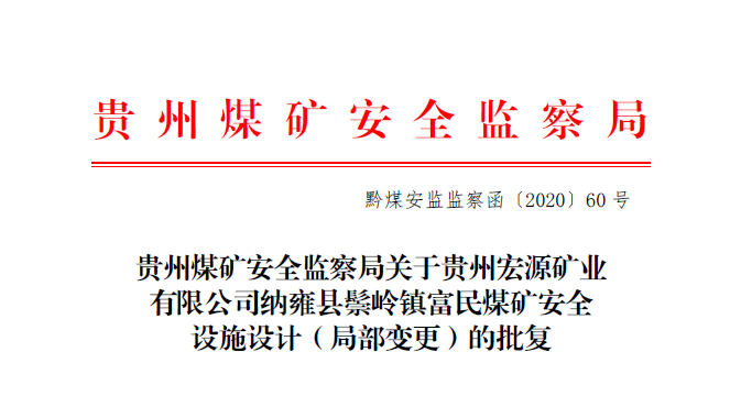納雍縣鬃嶺鎮富民煤礦(兼并重組)安全設施設計(局部修改)