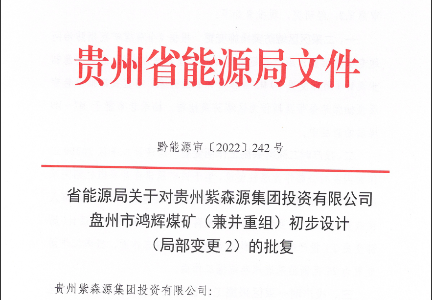 盤州市鴻輝煤礦 初步設計(局部變更2)