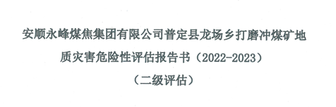 安順永峰煤焦集團有限公司普定縣龍場鄉打磨沖煤礦地質災害危險性評估報告書(2022-2023年度) (二級評估)
