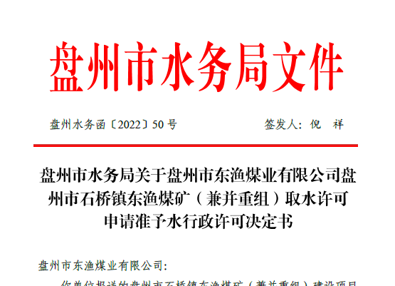 盤(pán)州市東漁煤業(yè)有限公司盤(pán)州市石橋鎮(zhèn)東漁煤礦(兼并重組)水資源論證報(bào)告