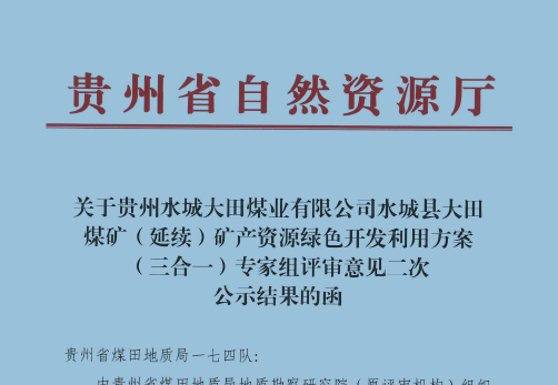 水城縣大田煤礦(延續)礦產資源綠色開發利用方案(三合一)