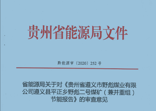 遵義縣平正鄉野彪二號煤礦(兼并重組)節能報告