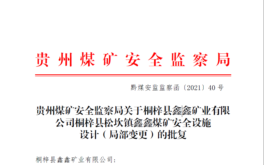 桐梓縣松坎鎮鑫鑫煤礦安全設施設計(局部變更)