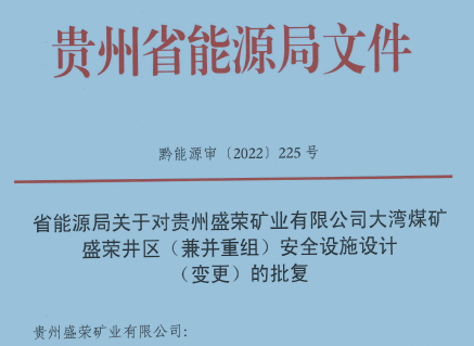 貴州盛榮礦業(yè)有限公司 大灣煤礦盛榮井區(qū)(兼并重組) 安全設(shè)施設(shè)計(jì)(變更)