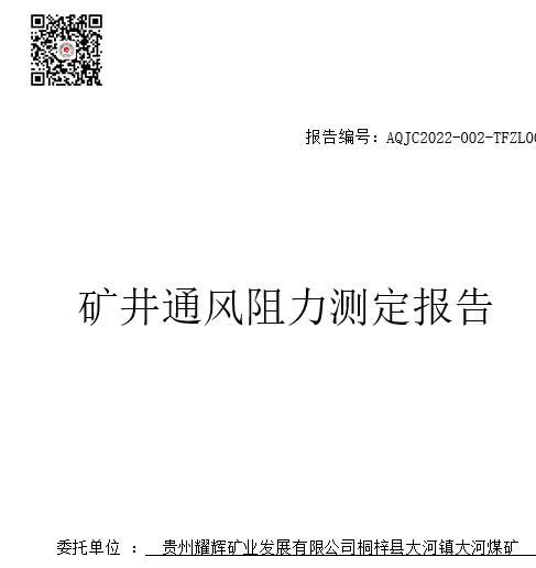 桐梓縣大河鎮大河煤礦礦井通風阻力測定