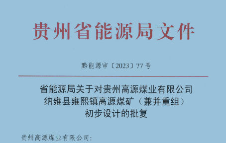 納雍縣雍熙鎮(zhèn)高源煤礦(兼并重組) 初步設(shè)計(jì)