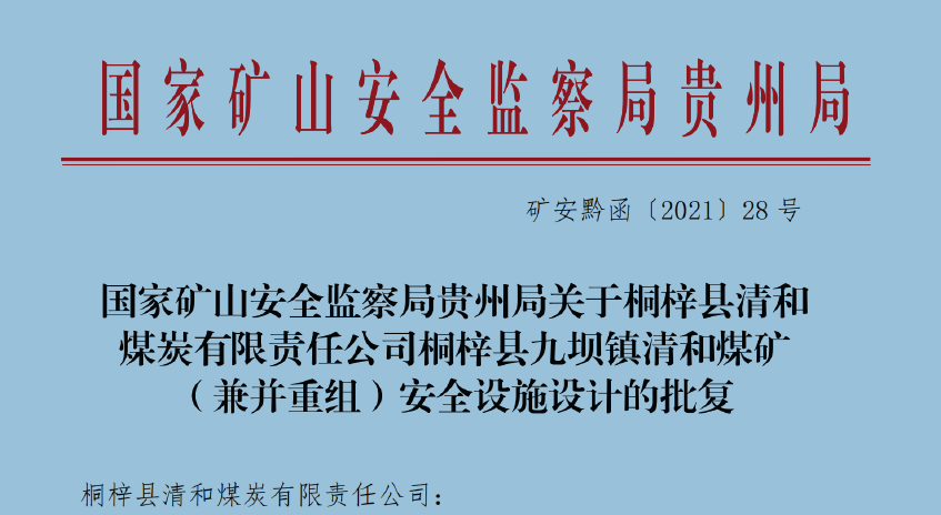 桐梓縣清和煤炭有限責(zé)任公司桐梓縣九壩鎮(zhèn)清和煤礦(兼并重組)安全設(shè)施設(shè)計(jì)