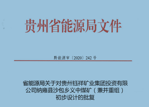貴州耀輝礦業發展有限公司桐梓縣九壩鎮清和煤礦初步設計