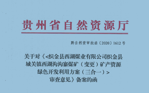 織金縣城關鎮西湖溝溝寨煤礦礦產資源綠色開發利用方案(三合一)