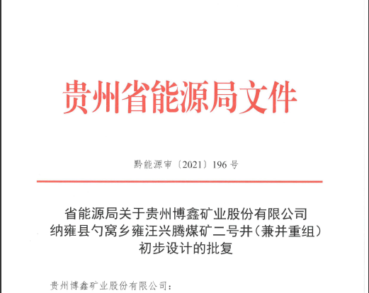 納雍縣勺窩鄉雍汪興騰煤礦二號井〈兼并重組〉初步設計