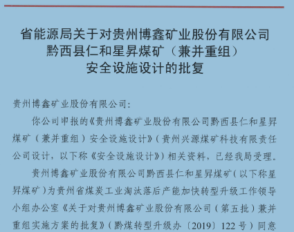 貴州博鑫礦業股份有限公司 黔西縣仁和星昇煤礦(兼并重組) 安全設施設計