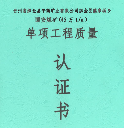 織金縣熊家場鄉國安煤礦單項工程質量認證