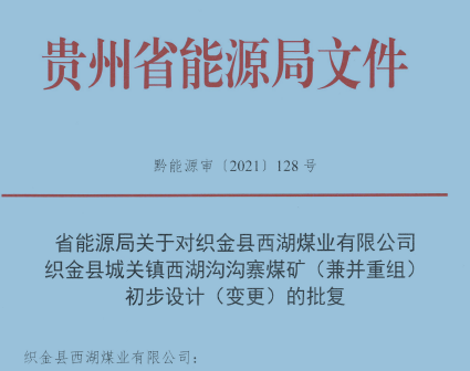 織金縣城關鎮西湖溝溝寨煤礦初步設計(變更)