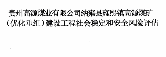 納雍縣雍熙鎮高源煤礦(優化重組)建設工程社會穩定和安全風險評估報告書