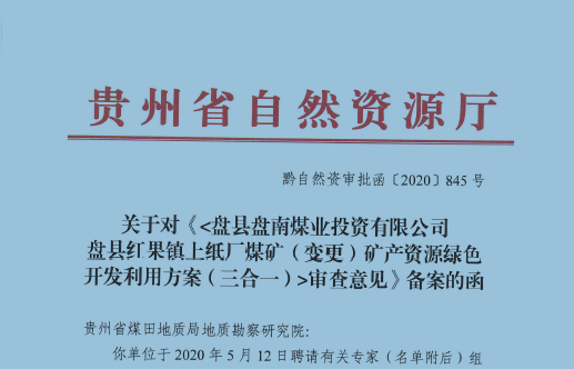 盤縣盤南煤業投資有限公司 盤縣紅果鎮上紙廠煤礦(變更) 礦產資源綠色開發利用方案(三合一)