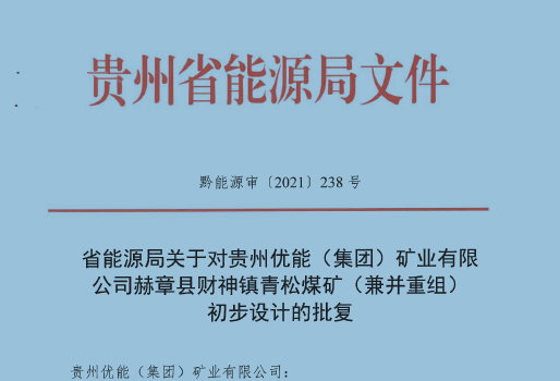 貴州優能(集團)礦業有限公司 赫章縣財神鎮青松煤礦(兼并重組) 初步設計