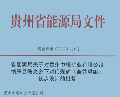 納雍縣曙光鄉下對門煤礦(兼并重組) 初步設計