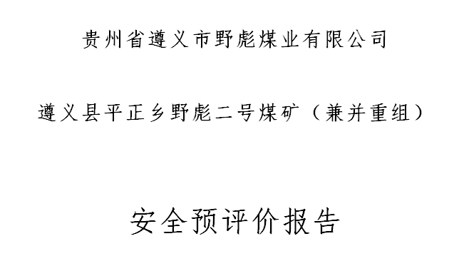 遵義縣平正鄉野彪二號煤礦(兼并重組)安全預評價