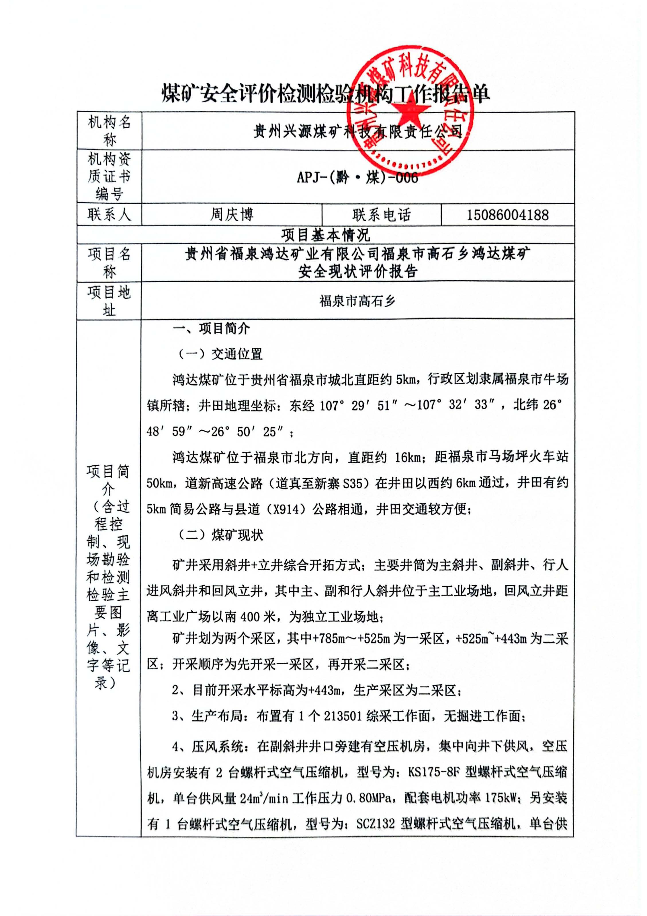 職業病危害評價機構從業告知書[貴州浦鑫能源有限公司六枝特區新華鄉六家壩煤礦]