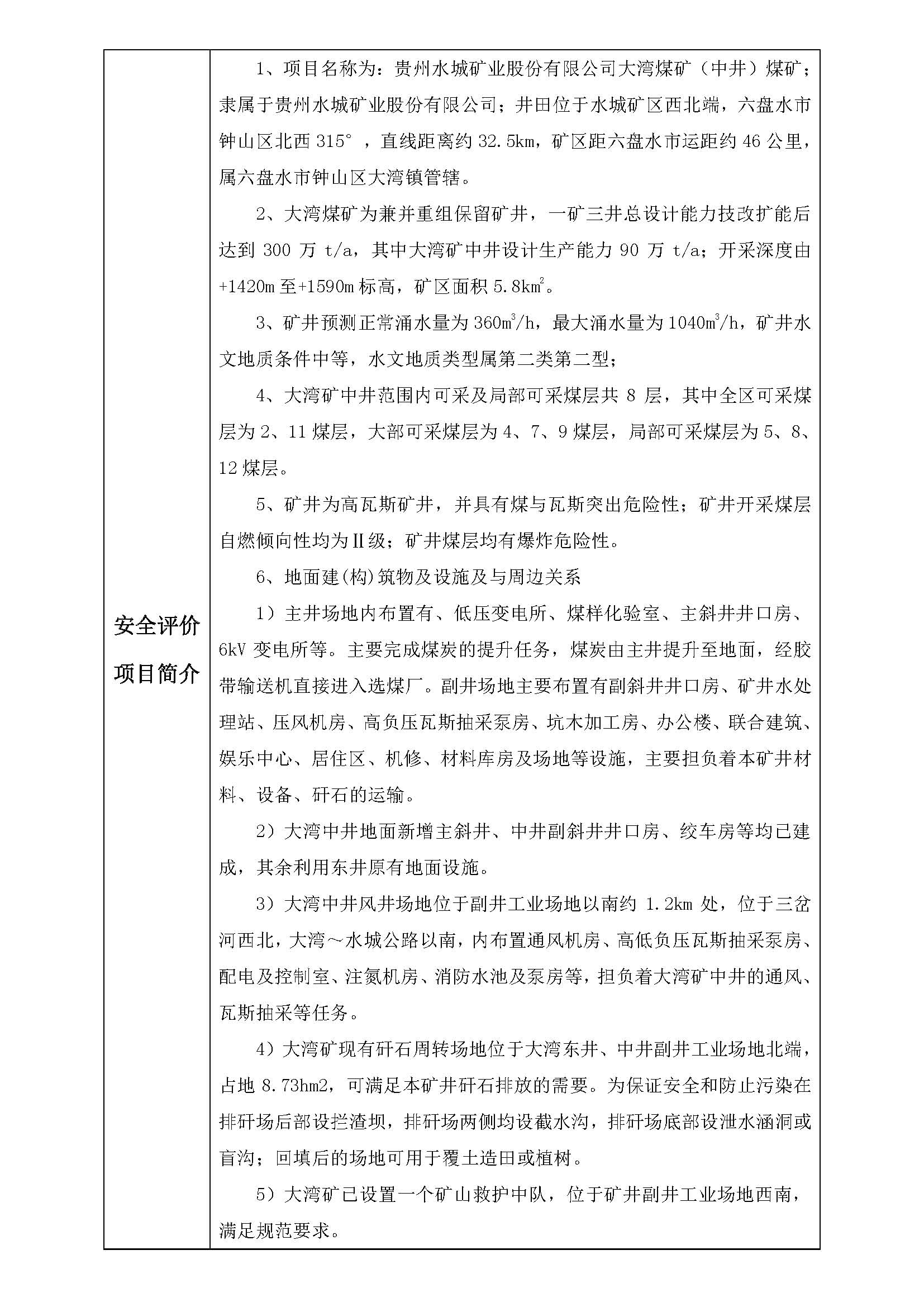 貴州水城礦業股份有限公司大灣煤礦(中井)安全預評價網上公開信息表