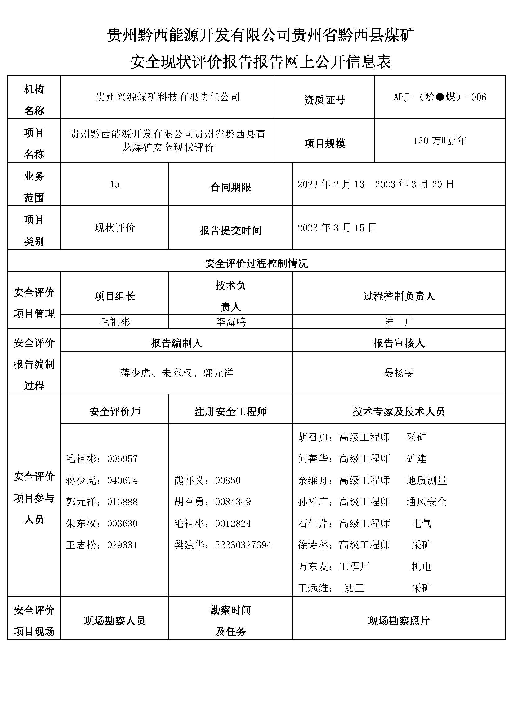 貴州黔西能源開發(fā)有限公司貴州省黔西縣煤礦安全現(xiàn)狀評(píng)價(jià)報(bào)告報(bào)告網(wǎng)上公開信息表
