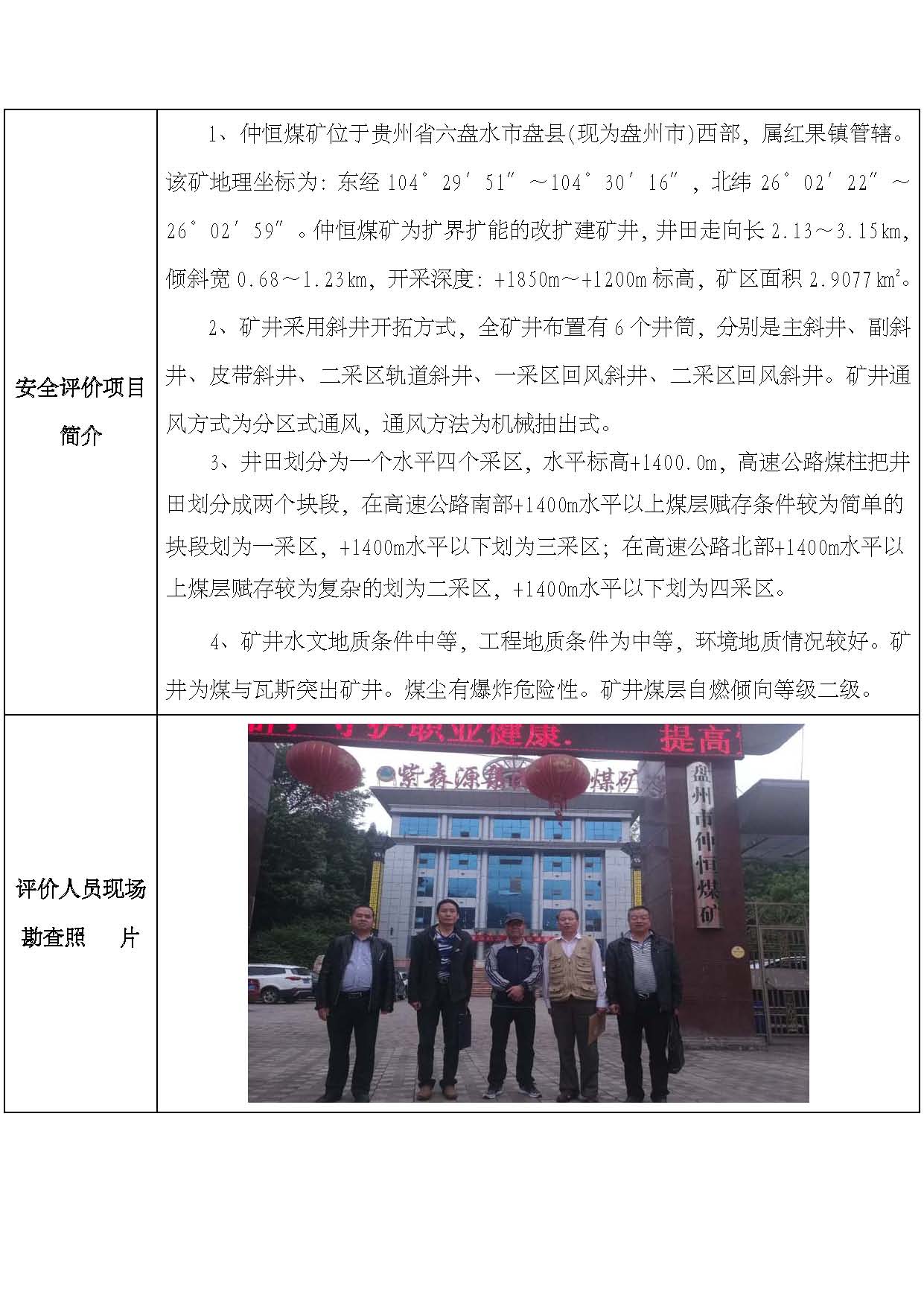 貴州盤縣紫森源(集團)實業發展投資有限公司盤縣紅果鎮仲恒煤礦安全現狀評價網上公開信息表