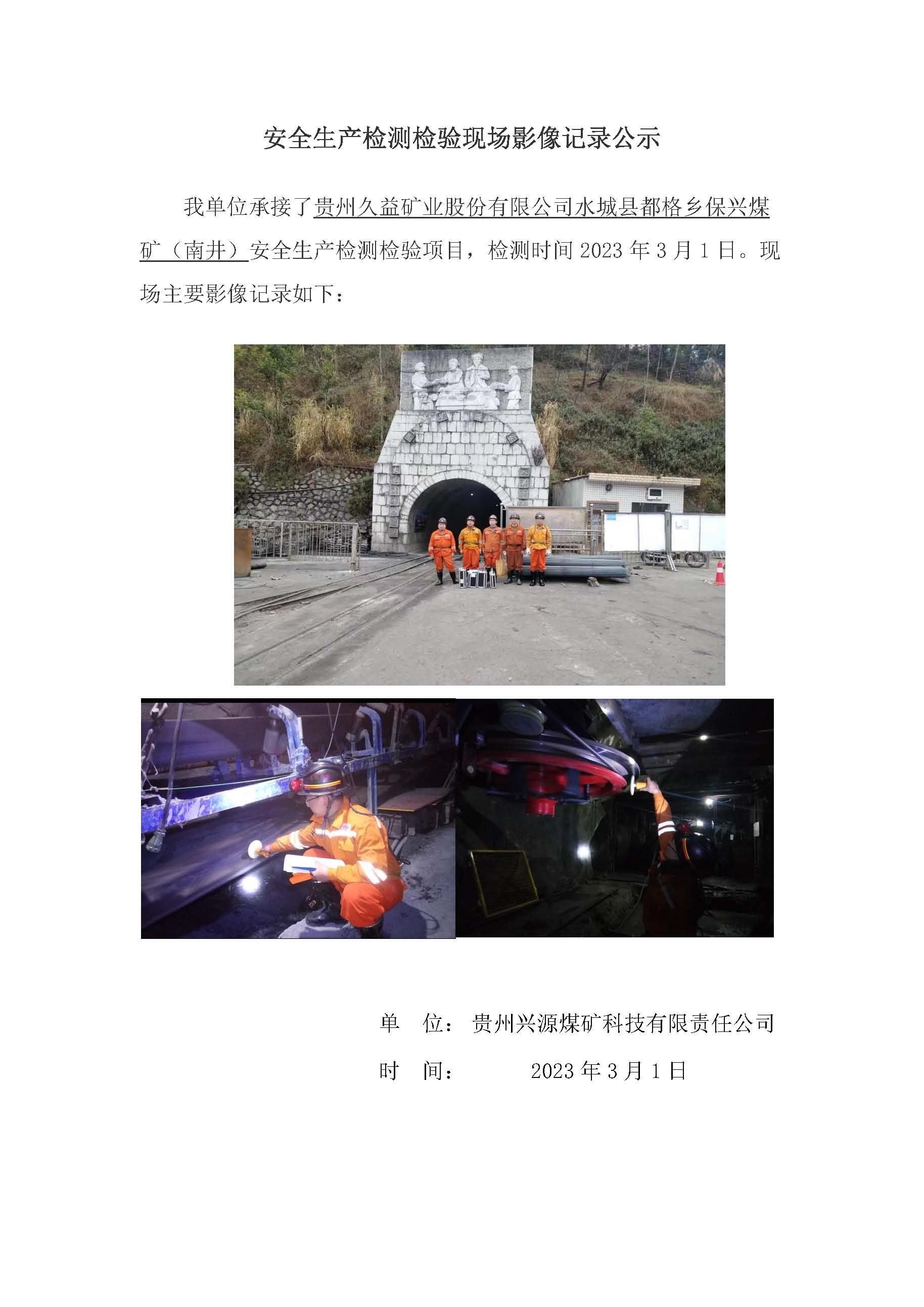 安全生產檢測檢驗現場影像記錄公示【貴州久益礦業股份有限公司水城縣都格鄉保興煤礦(南井)】