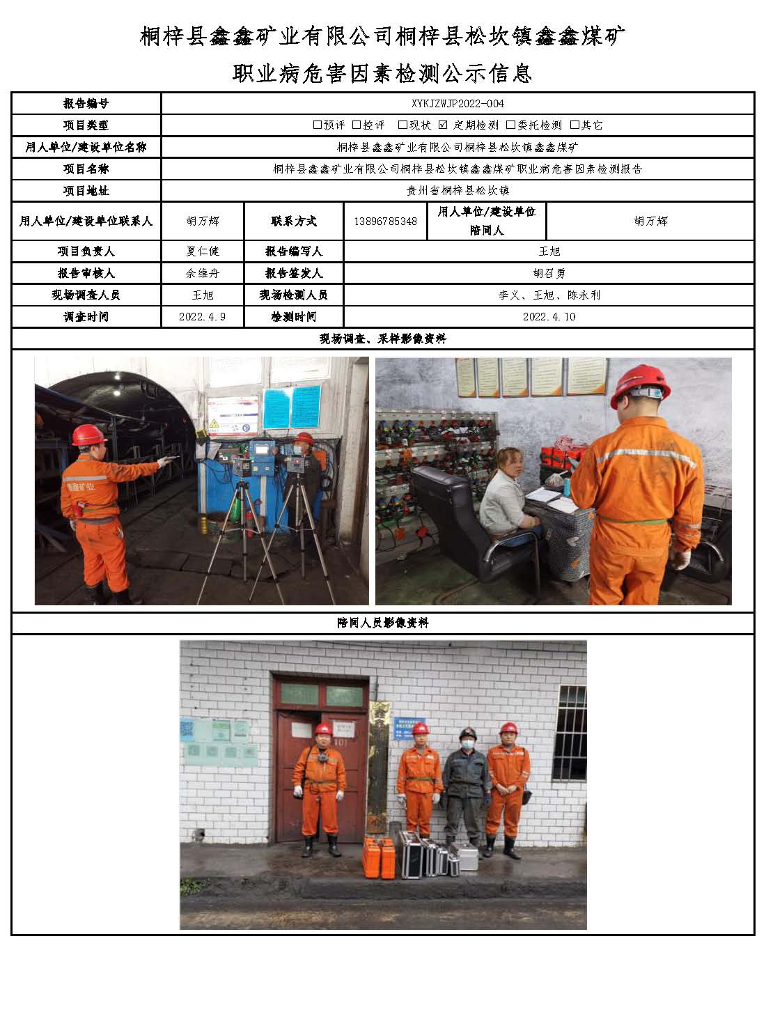 桐梓縣鑫鑫礦業(yè)有限公司桐梓縣松坎鎮(zhèn)鑫鑫煤礦職業(yè)病危害因素檢測公示信息