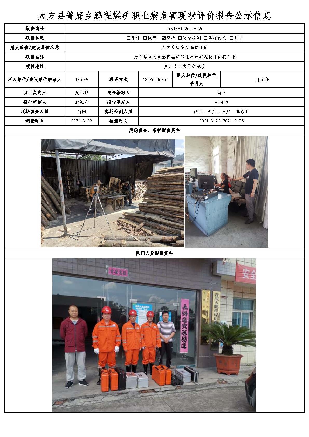 大方縣普底鄉(xiāng)鵬程煤礦職業(yè)病危害現(xiàn)狀評(píng)價(jià)報(bào)告公示信息