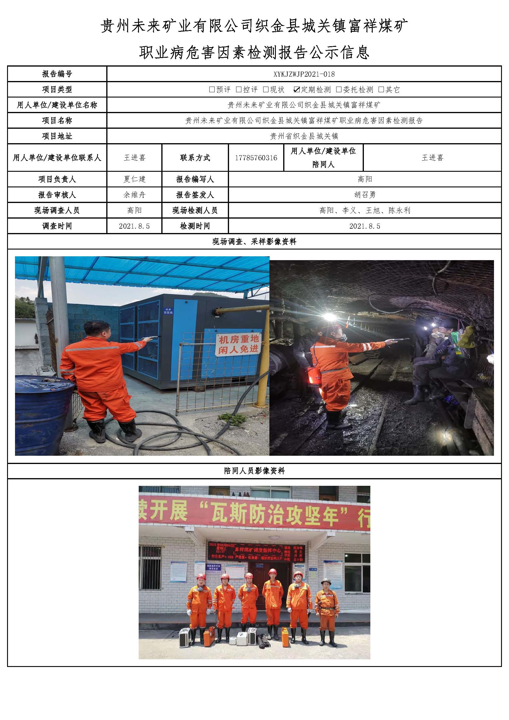 貴州未來(lái)礦業(yè)有限公司織金縣城關(guān)鎮(zhèn)富祥煤礦 職業(yè)病危害因素檢測(cè)報(bào)告公示信息
