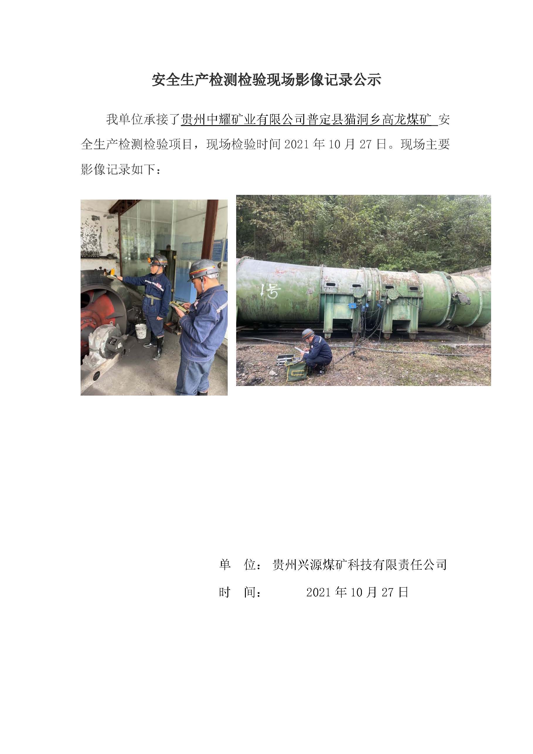 安全生產(chǎn)檢測(cè)檢驗(yàn)現(xiàn)場(chǎng)影像記錄公示【貴州中耀礦業(yè)有限公司普定縣貓洞鄉(xiāng)高龍煤礦】