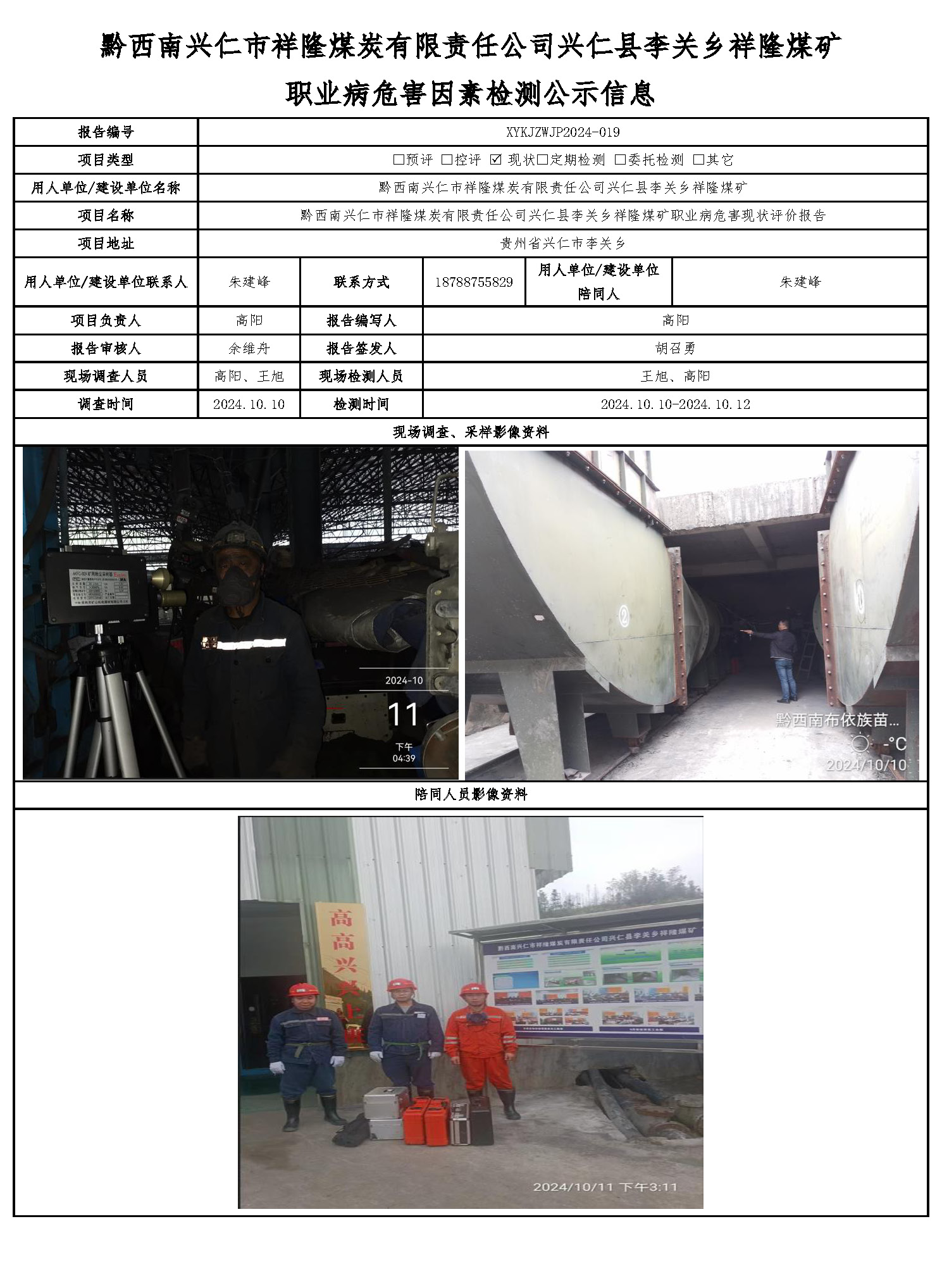 黔西南興仁市祥隆煤炭有限責任公司興仁縣李關鄉祥隆煤礦 職業病危害因素檢測公示信息