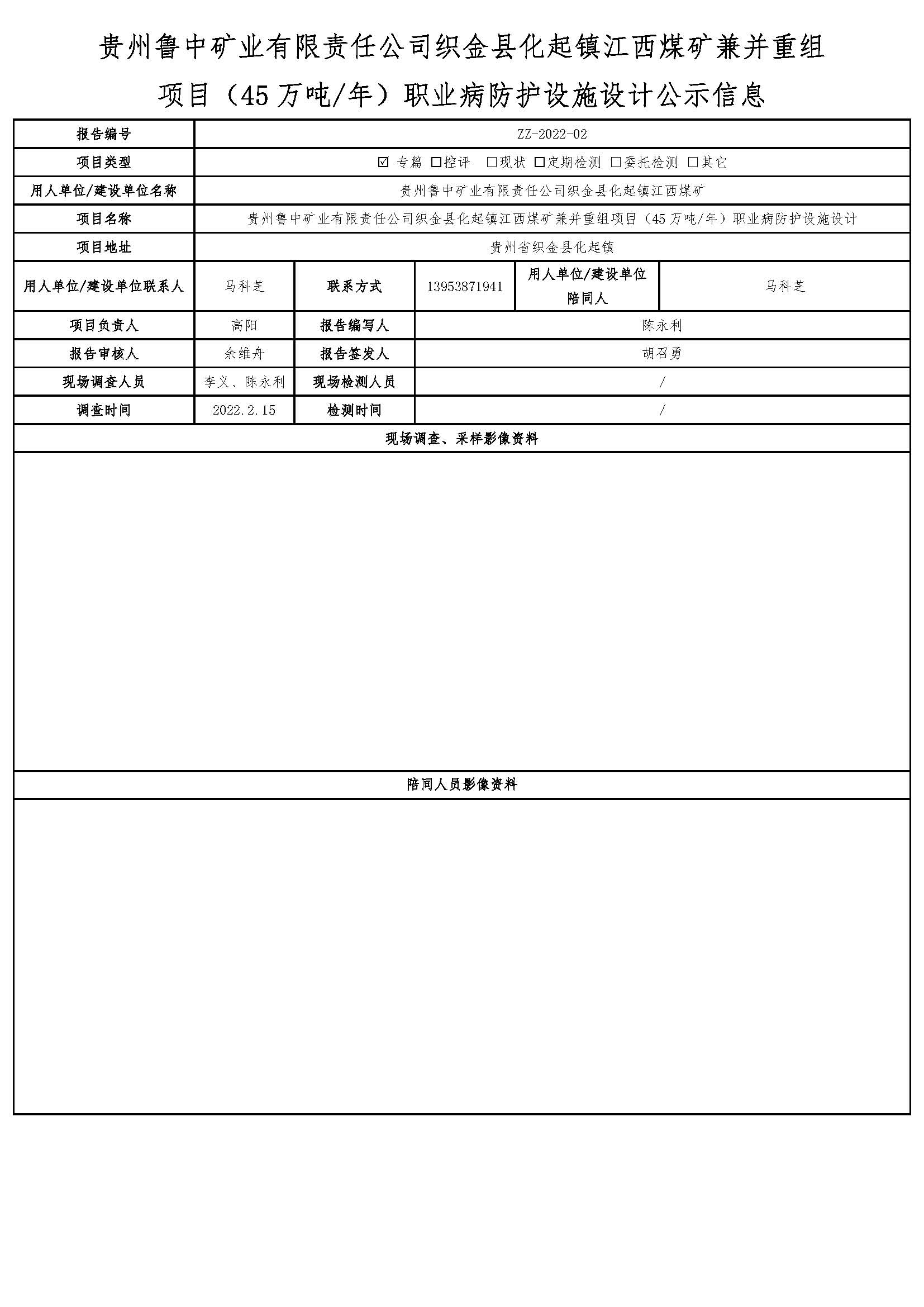貴州魯中礦業有限責任公司織金縣化起鎮江西煤礦兼并重組項目職業病防護設施設計公示信息