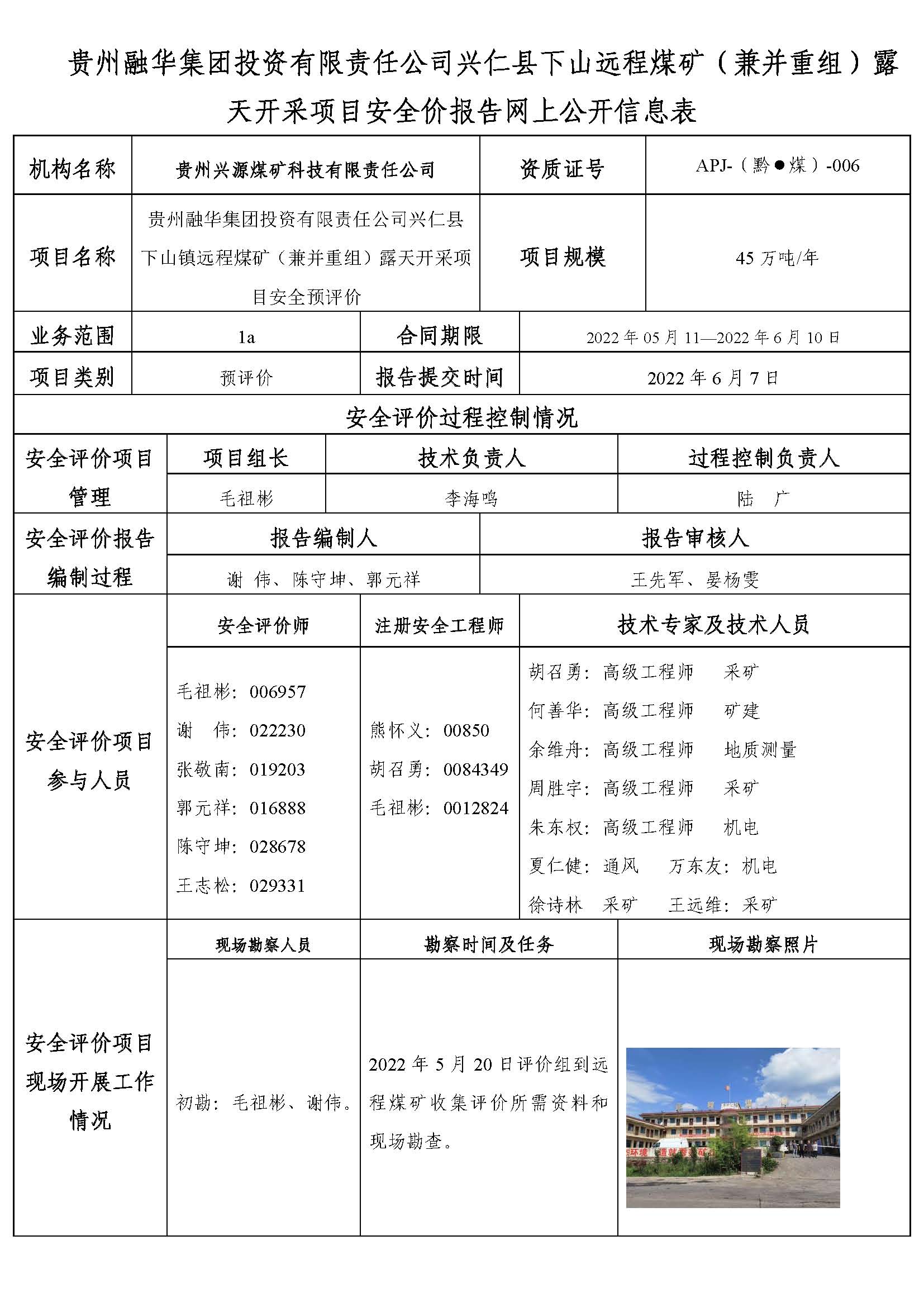 貴州融華集團(tuán)投資有限責(zé)任公司興仁縣下山遠(yuǎn)程煤礦(兼并重組)露天開采項(xiàng)目安全價(jià)報(bào)告網(wǎng)上公開信息表