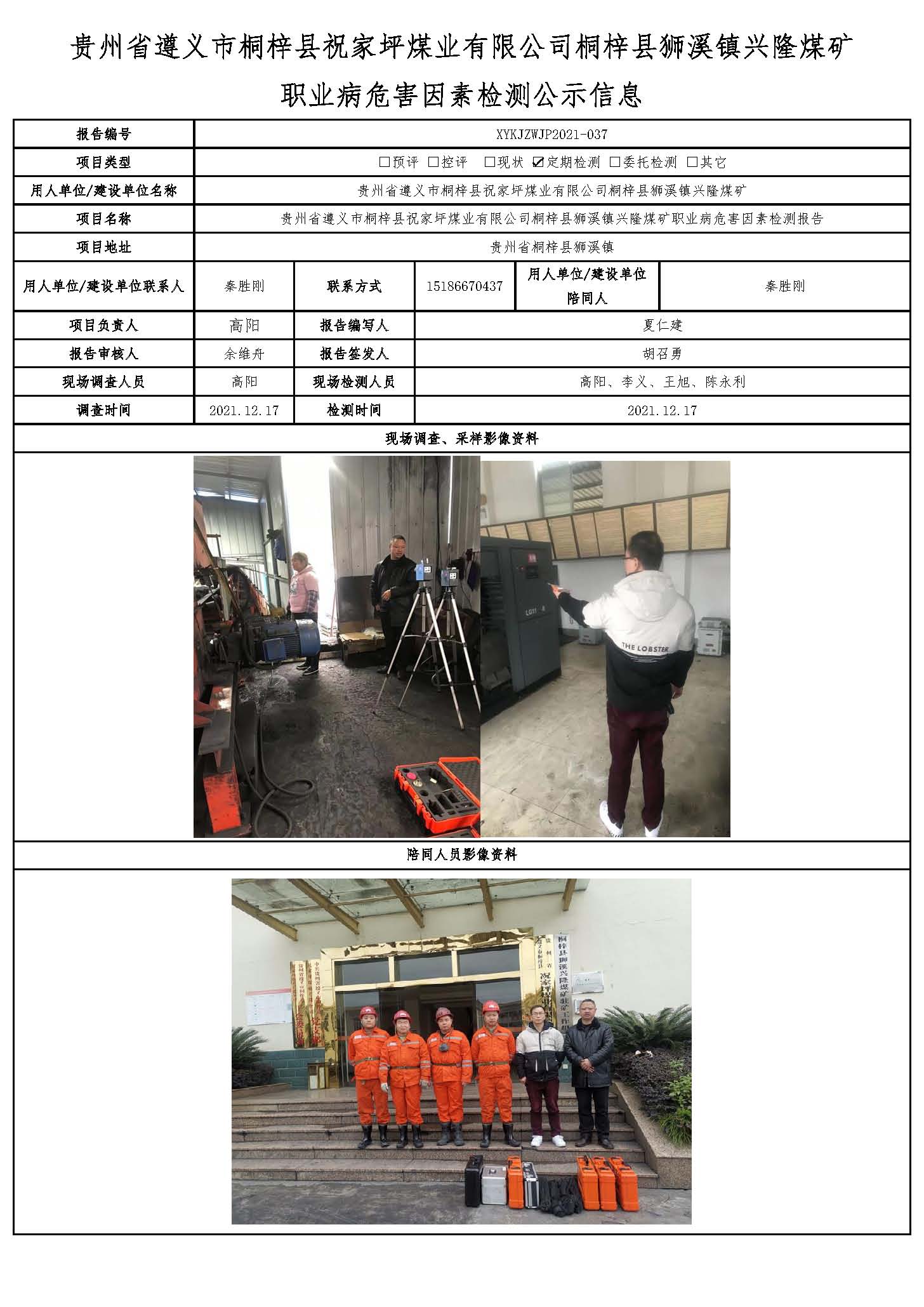 貴州省遵義市桐梓縣祝家坪煤業(yè)有限公司桐梓縣獅溪鎮(zhèn)興隆煤礦 職業(yè)病危害因素檢測(cè)公示信息