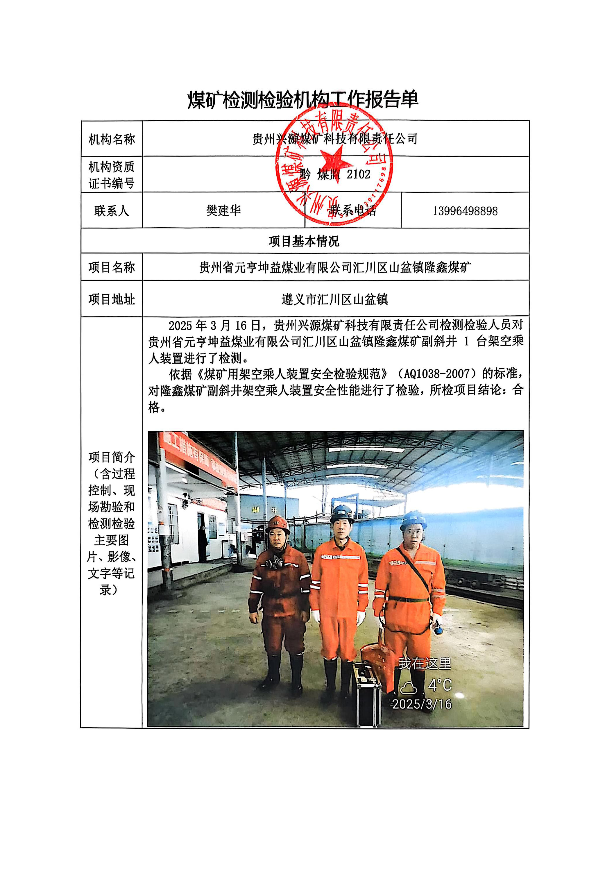 煤礦檢測(cè)檢驗(yàn)機(jī)構(gòu)工作報(bào)告單【貴州省元亨坤益煤業(yè)有限公司匯川區(qū)山盆鎮(zhèn)隆鑫煤礦】