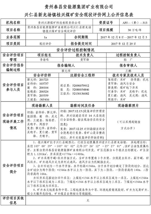 貴州泰昌安能源集團礦業有限公司興仁縣新龍場鎮桂興煤礦安全現狀評價網上公開信息表